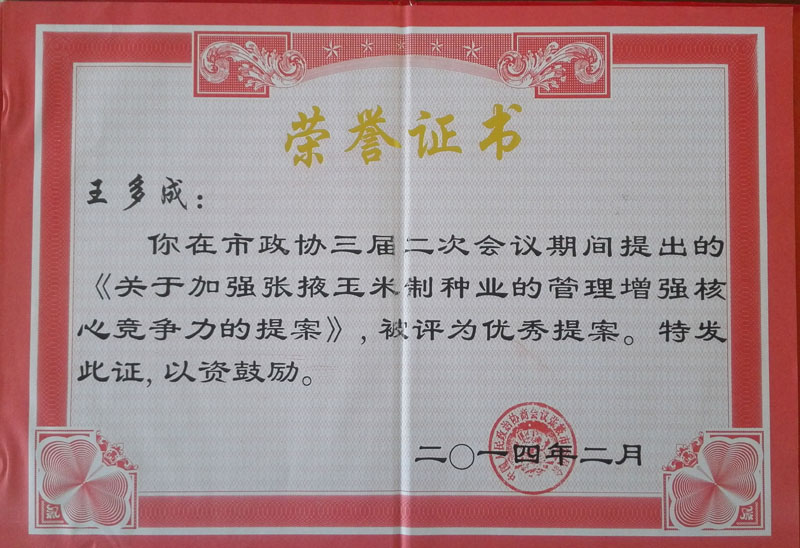 張掖市多成農(nóng)業(yè)有限公司是一家以玉米雜交種生產(chǎn)經(jīng)營(yíng)為主的農(nóng)業(yè)科技型民營(yíng)企業(yè)。公司由兩個(gè)種子加工廠和1個(gè)良種繁育基地及1個(gè)優(yōu)質(zhì)梨示范基地組成。加工廠占地15.8萬(wàn)平方米,擁有種子加工線3條,檢驗(yàn)室2個(gè),年生產(chǎn)、加工能力2000萬(wàn)公斤。有良種示范基地2000畝,優(yōu)質(zhì)梨示范基地500畝。固定資產(chǎn)總值超億元。 公司自成立以來,選育、示范推廣“正德”系列玉米新品種3個(gè),年銷量1000多噸。先后與東北、華北、黃淮等地的多家大型種子企業(yè)建立了穩(wěn)定的……[查看全文] |
